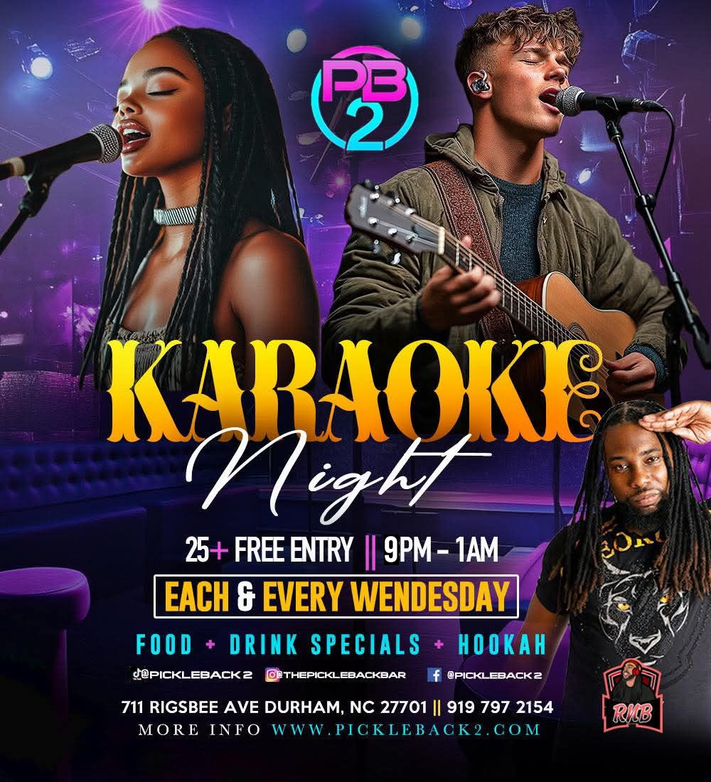 KARAOKEBy Pickleback2 / 31 January 2024 KARAOKE 844 844 people viewed this event. Register for event Date And Time 04-29-26 @ 09:00 PM to 04-30-26 @ 01:00 AM Location 711 Rigsbee Ave Share With Friends Facebook Twitter Linkedin Xing Pinterest